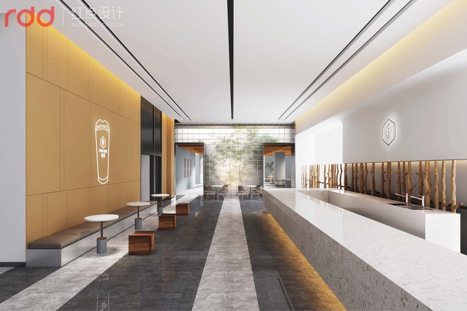 茶飲在中國的市場需求越來越大,在炎炎夏日,喝上一杯茶,瞬間透心涼。因此又有一家新的餐飲連鎖品牌公司誕生了。初茶總部是展廳體驗館和辦公融洽的辦公空間。