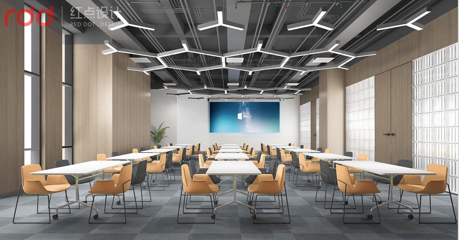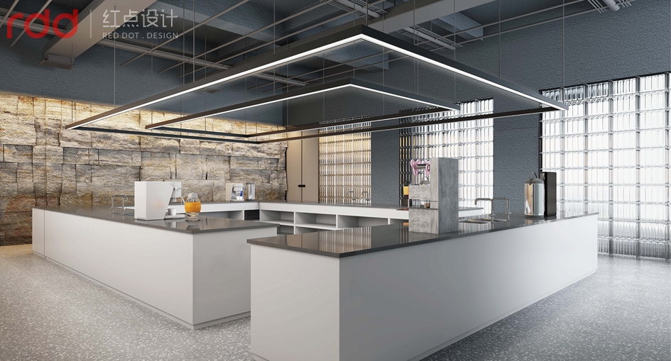 產品展示區(qū)設立多個擺放區(qū)極簡展品柜,在立面空間表現(xiàn)了設計定律,多則是少,少則是多的理念。產品的展臺,用以開放式展示,讓不同產品和原料的展示,產品讓客戶得以觀,觸,摸真實的體現(xiàn)。培訓區(qū)域設置在整個空間的右側,既能保持空間足夠容納眾多學員的培訓與實操,避免了影響到辦公和其它區(qū)域。