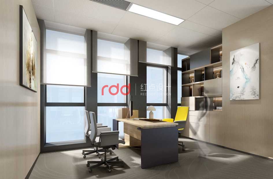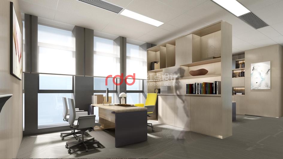 為了滿足節(jié)省空間的需求,經(jīng)理區(qū)采用柜子間隔的形式。