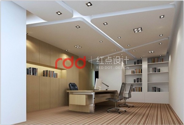 總經(jīng)理辦公室以整體木飾面柜子為背景,簡(jiǎn)單時(shí)尚的造型天花。