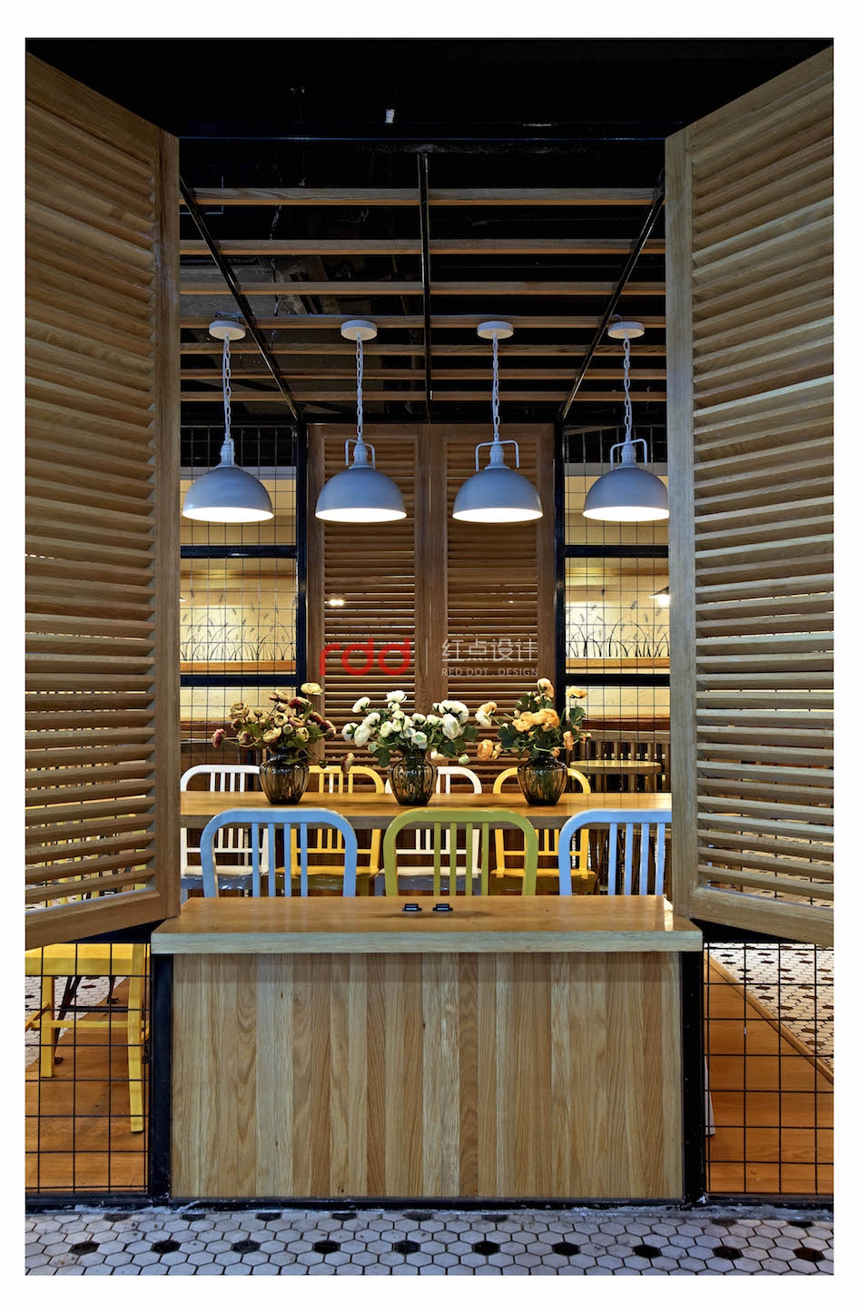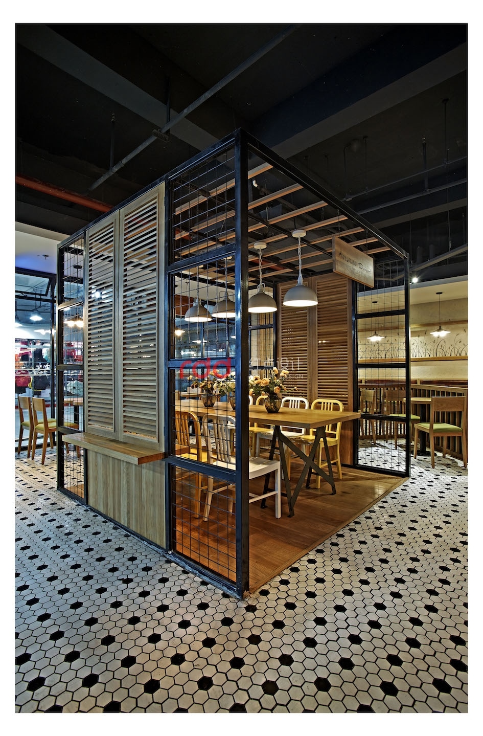獨(dú)具匠心的空間劃分,大廳以麥色為主基調(diào),橡木板染色,網(wǎng)格鐵藝與橡木柵欄圈出一片靜謐安詳,明亮的燈光瀉落在餐桌的小雛菊上,挪動(dòng)干凈簡(jiǎn)易的座椅,轉(zhuǎn)身推開窗戶,風(fēng)吹麥浪,起起伏伏,甜甜的氣息迎面撲來,在心底吹起一葉屬于回憶的麥片,發(fā)人深省。