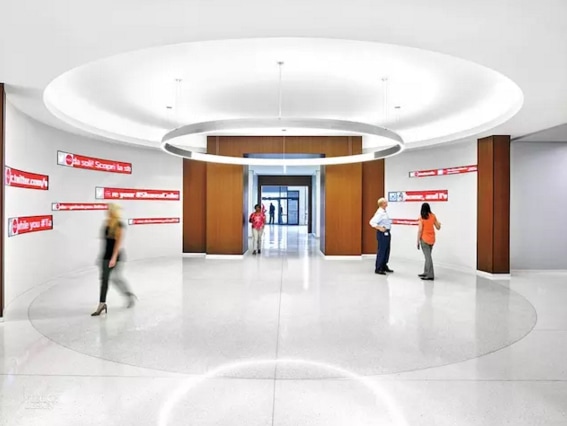 就像是很多科技巨頭的做法一樣,新的可口可樂(lè)總部看起來(lái)就像是大學(xué)校園。一項(xiàng)叫做“主街體驗(yàn)”的設(shè)計(jì)是改造的精彩之處,它將園區(qū)內(nèi)的六棟建筑宮的底層全部打通,形成了一個(gè)完整的公共空間。改造之后的園區(qū)囊括了診所、藥店、便利店、健身中心、自行車(chē)存放處、干洗店、商業(yè)街,員工們不必離開(kāi)園區(qū)即可滿(mǎn)足日常需求。