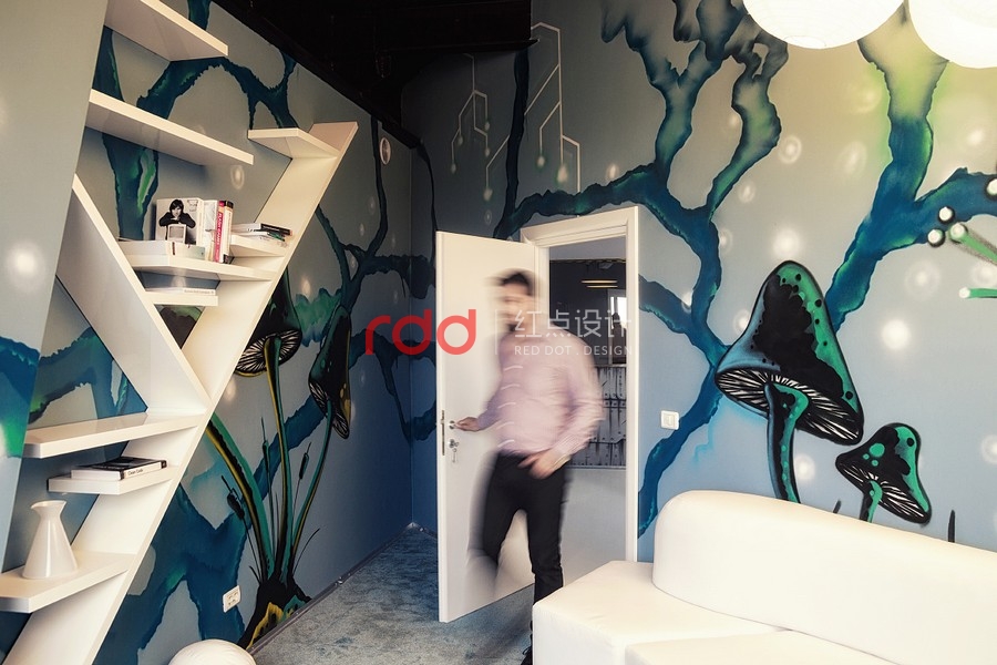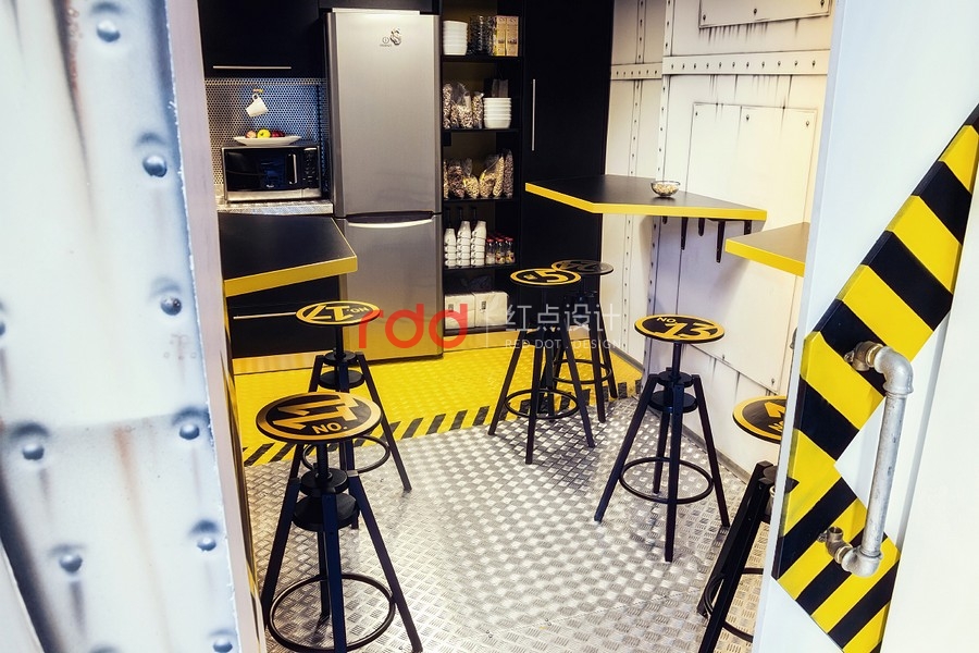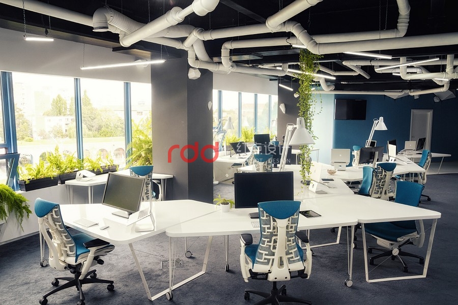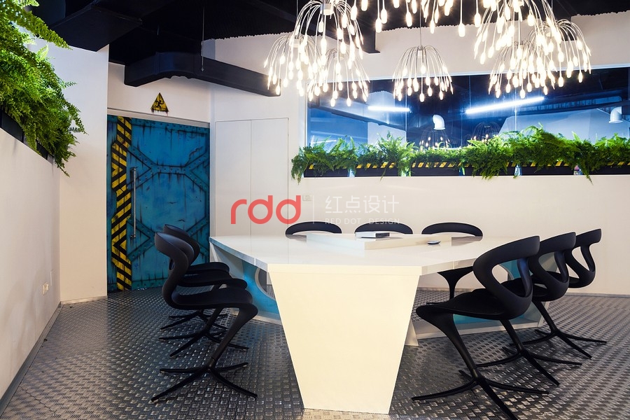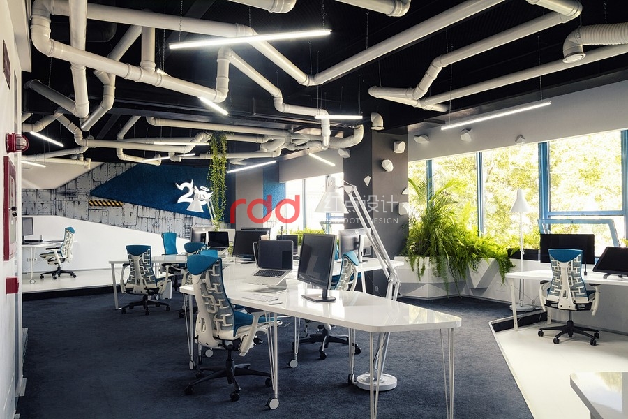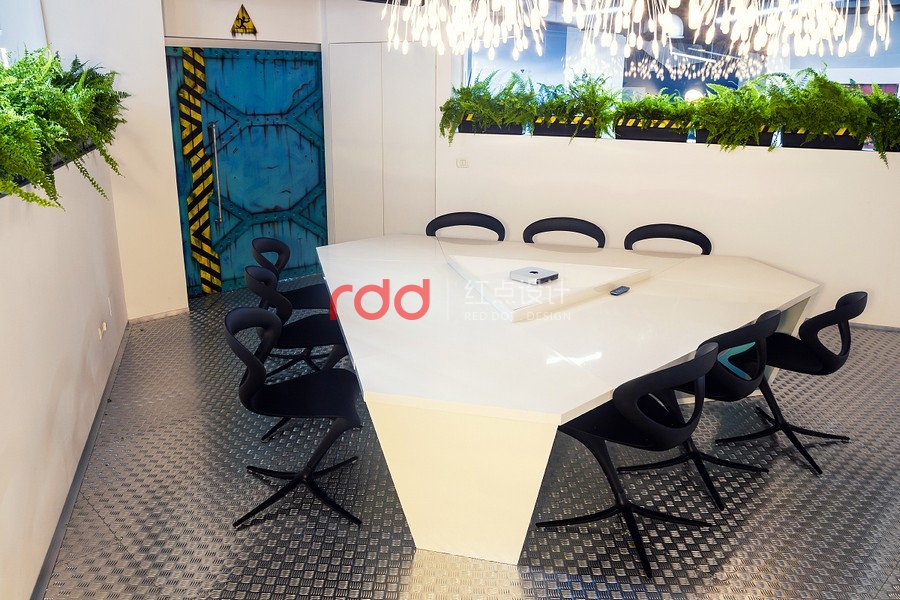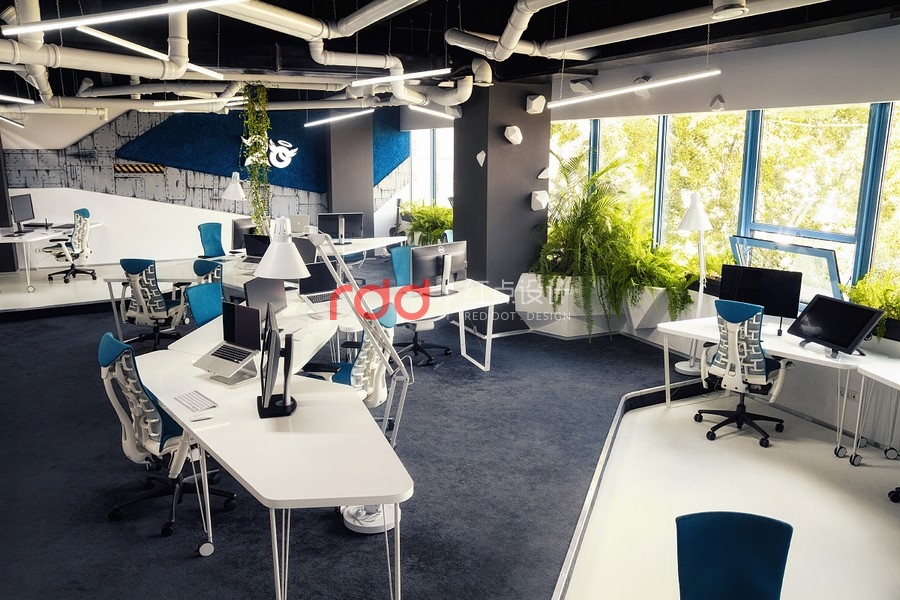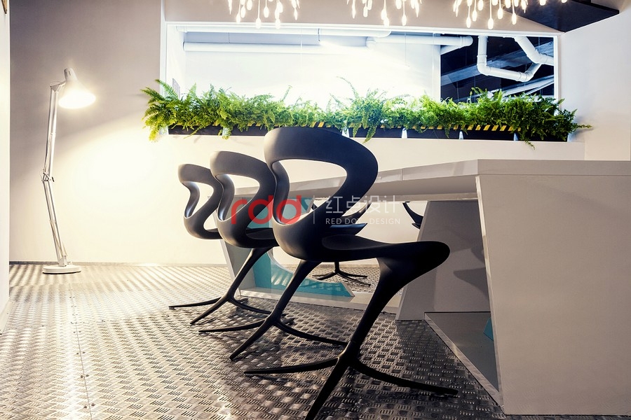 因此,我們從科學(xué)的角度出發(fā),或是有點像太空船入侵大自然的感覺,還有一個主角就是"巨大黑暗的真菌",錯綜復(fù)雜的管道布滿天花板而天然植物從管道綻放出。要實現(xiàn)"飛船"的概念為了要有更多的空間就必需要增加天花板的高度,讓整體辦公空間感更舒適,這個概念可能是之前都沒有使用過的架構(gòu)。創(chuàng)意的想法不需要遵循任何準(zhǔn)則,這是獨一無二由我們創(chuàng)造的"酷風(fēng)格"。將大自然的資源作最佳的利用,將植物擺放在窗臺旁只要簡單的維護(hù)或是澆水即可,這也是業(yè)主想要追求的"可永續(xù)發(fā)展的辦公室"理念。