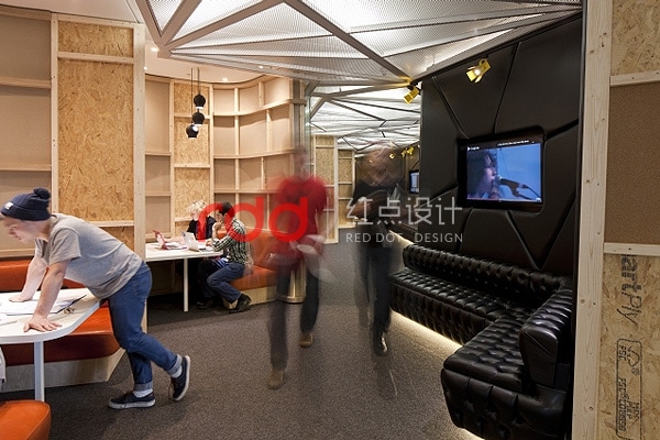 豐富有趣的場景真的一一實現(xiàn),包括隨性的座位或沙發(fā),以及一面宛如星光大道的YouTube名人堂走道,還有全部由公司內部制作并可以立即制播、放送到各角落平面螢幕的專業(yè)設計;另一邊有著天鵝絨簾幕的電影放映室,放著舒適抱枕的軟墊沙發(fā)、皮椅;”造物主空間”( Creator Space )是設計師的一個心意,讓 YouTube 內部的所有”制片人”盡情享受這個辦公室的神奇創(chuàng)作過程。這些照片中只是幾個 YouTube 創(chuàng)意辦公室設計的亮點,好玩的細節(jié)得要各位睜大眼睛搜尋。透露給大家, Freshmore 團隊最喜歡的設計,是那間復制了英國家喻戶曉的電視人物 Del Boy 家的客廳。如果是你,最能提高工作斗志的又是哪個場景?