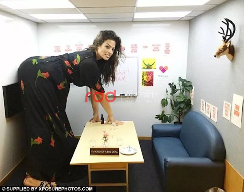 “Tiny Room”。這個(gè)size超小的房間里,有小型沙發(fā)和簡(jiǎn)單的桌凳,員工可以在這里進(jìn)行簡(jiǎn)單的討論。明星Selena Gomez和超模Ashley Graham都曾經(jīng)在這里留下過(guò)照片!