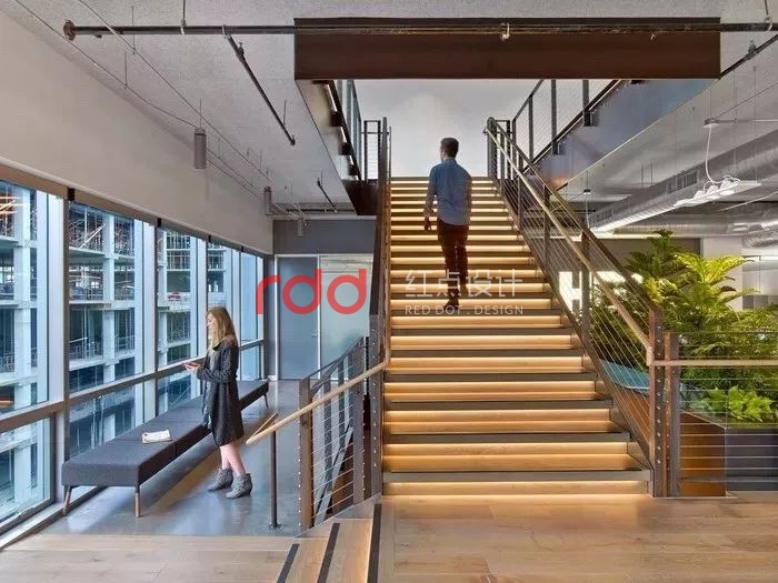 Rapt 工作室設(shè)計(jì)了一種改進(jìn)的地板系統(tǒng)和移動設(shè)備,讓員工毫不費(fèi)力地根據(jù)手頭的任務(wù)重新配置工作區(qū)域。另外還配有可寫的墻壁,展示墻提供空間給員工來收集和討論項(xiàng)目。