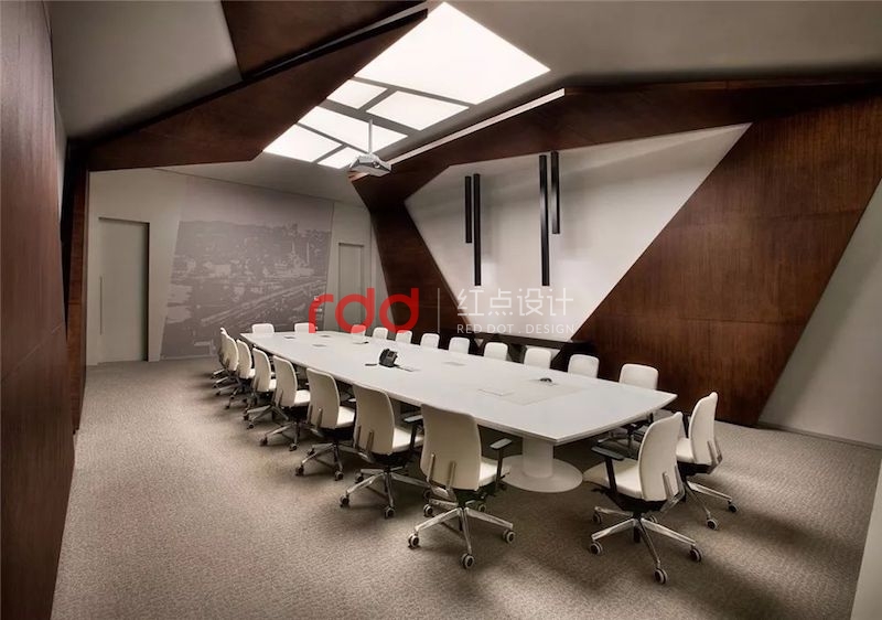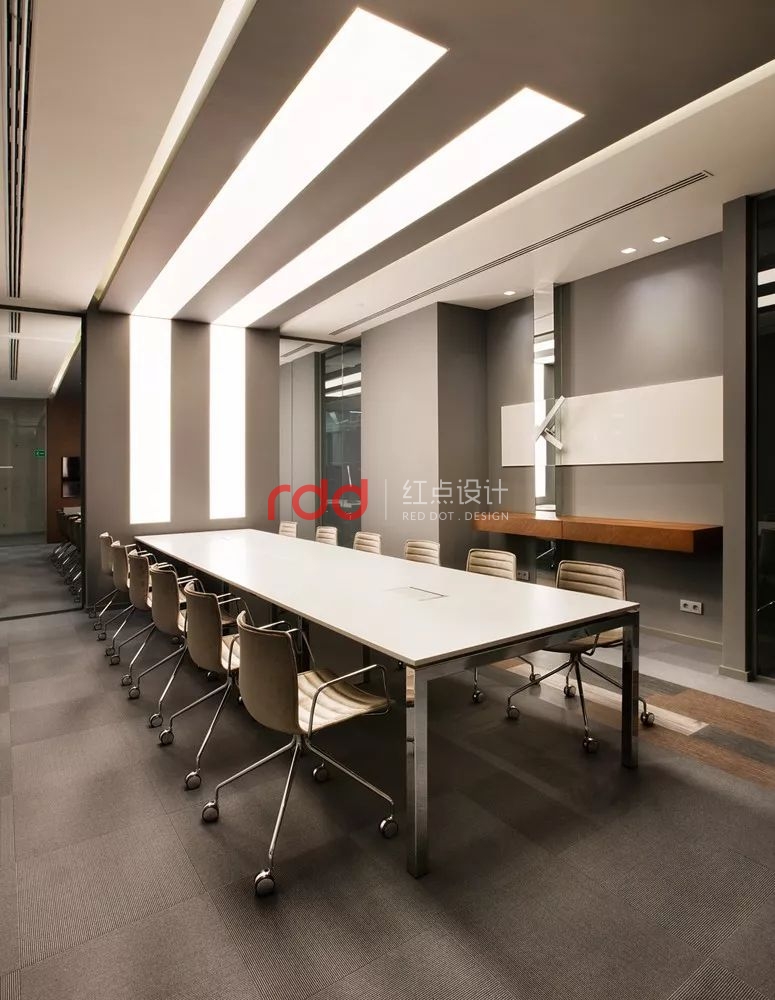會議室的設(shè)計旨在充分激發(fā)員工一起學(xué)習(xí)與交流,制定戰(zhàn)略??臻g的照明標(biāo)準(zhǔn)、聲學(xué)系統(tǒng)以及數(shù)字媒體系統(tǒng)參考了設(shè)計團隊以往的辦公項目,以塑造專業(yè)性和正式感。