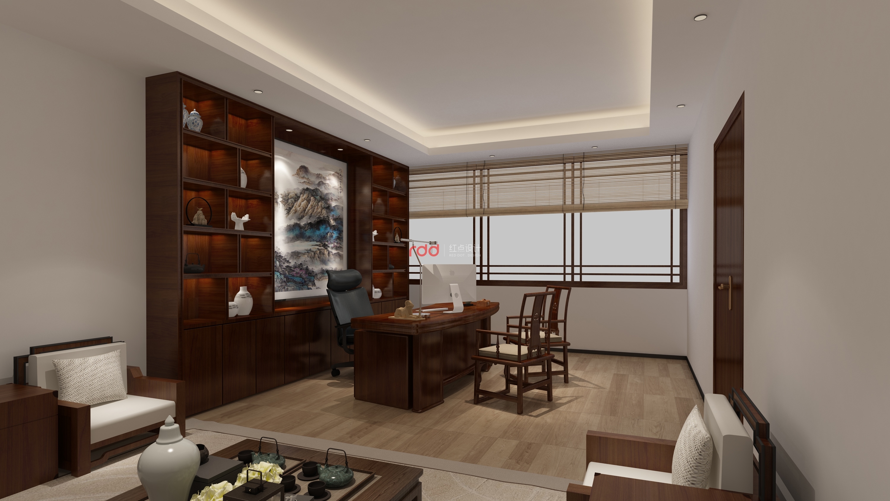 主要材料:木飾面、仿大理石磚、地膠